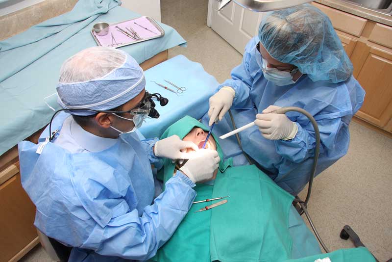 Preparing the jaw to receive new dentures by adding bone or by repositioning gum tissue